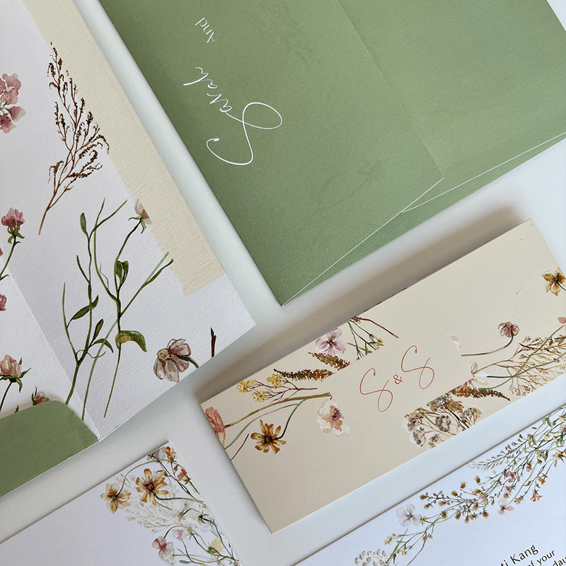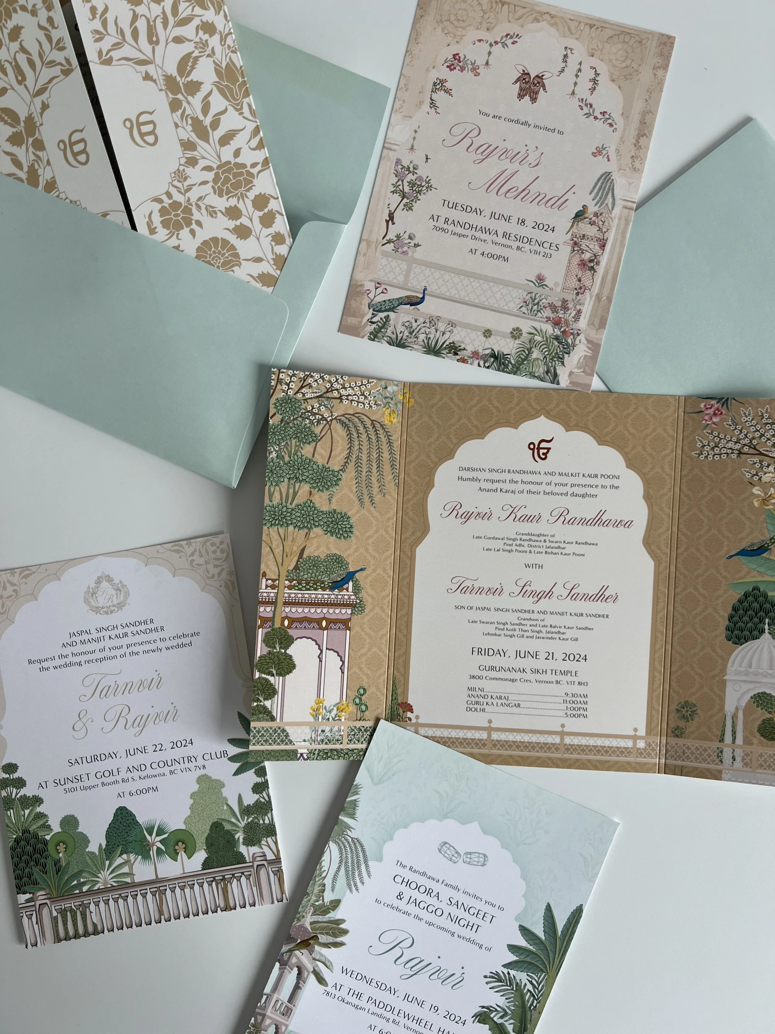 our designs blend generations-old art with modern concepts.Our goal is to create wedding stationery that is timeless, beautiful, and sustainable. Each piece is made to order, ensuring that we minimize waste and protect the environment. We offer a range of designs that clients can customize to match their unique wedding aesthetic.