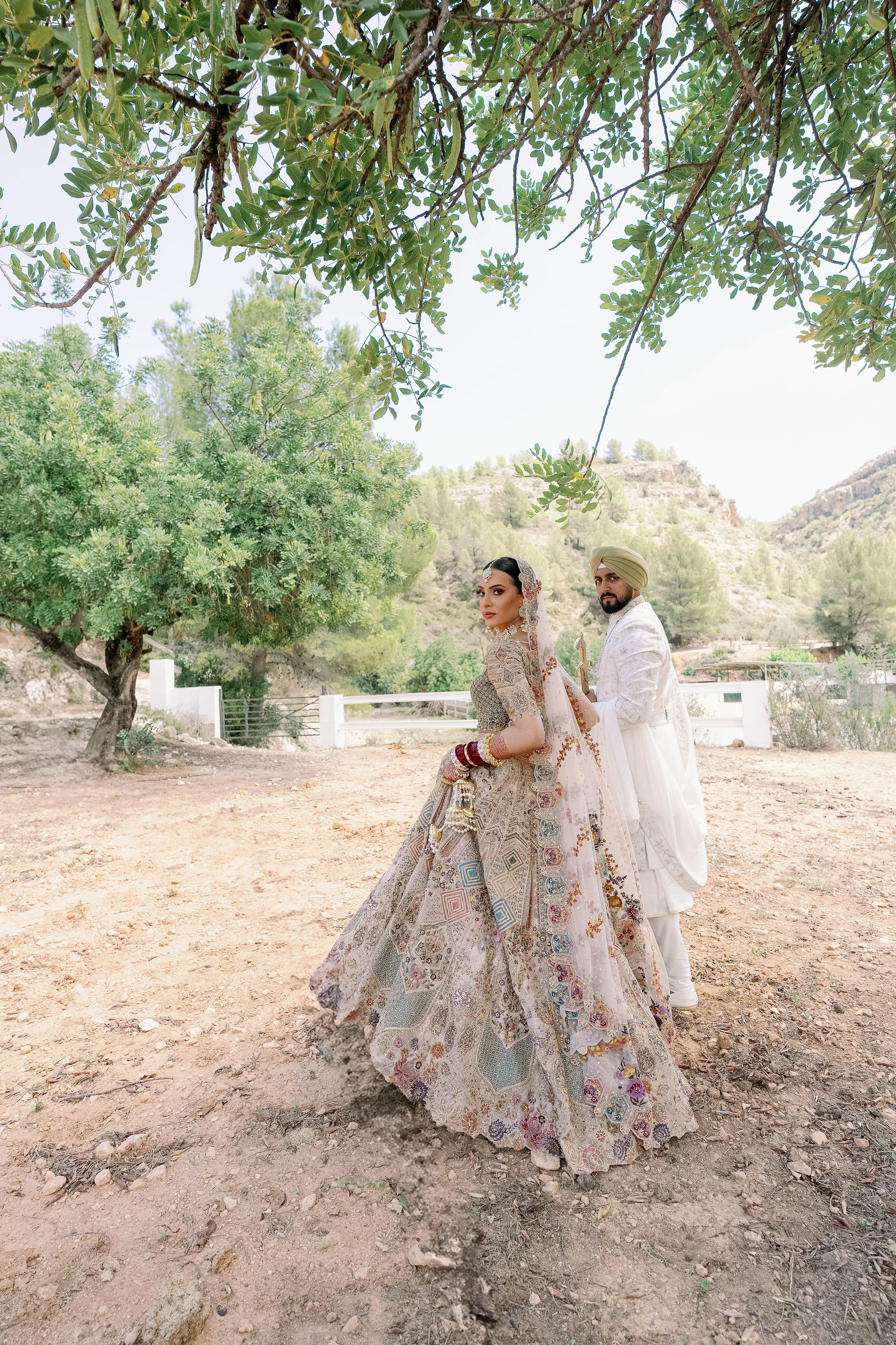 And then came the reception, a joyous celebration filled with dancing and laughter, set in a venue that perfectly captured the rustic Spanish vibe they had envisioned. "The reception was fun-filled, and our families had the best time together. This venue also overlooked the mountains, and it was just how we envisioned—a rustic Spanish vibe with the vibrancy of a Punjabi wedding," Kam recalls. "Our favourite moment was our first dance, which took place as the sun was setting over the mountains and countryside."