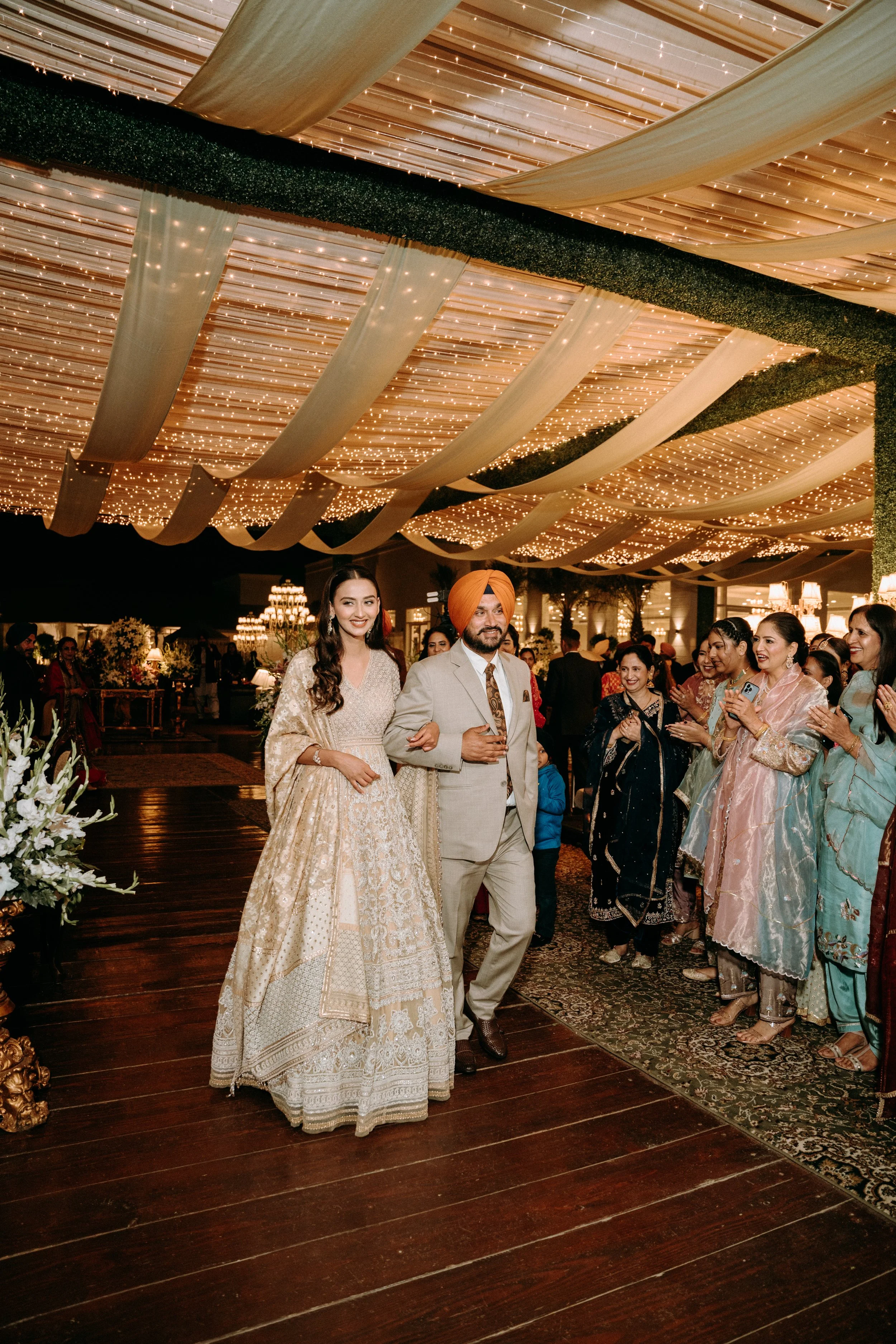 One of Khushman’s favorite moments from the wedding week was walking hand-in-hand with her dad toward the engagement ceremony. It was a walk she had imagined since she was a little girl. “As he led me toward Angad, teary-eyed, and gently placed my hand in his, it felt like the most beautiful passing of trust. A memory I’ll carry in my heart forever.”