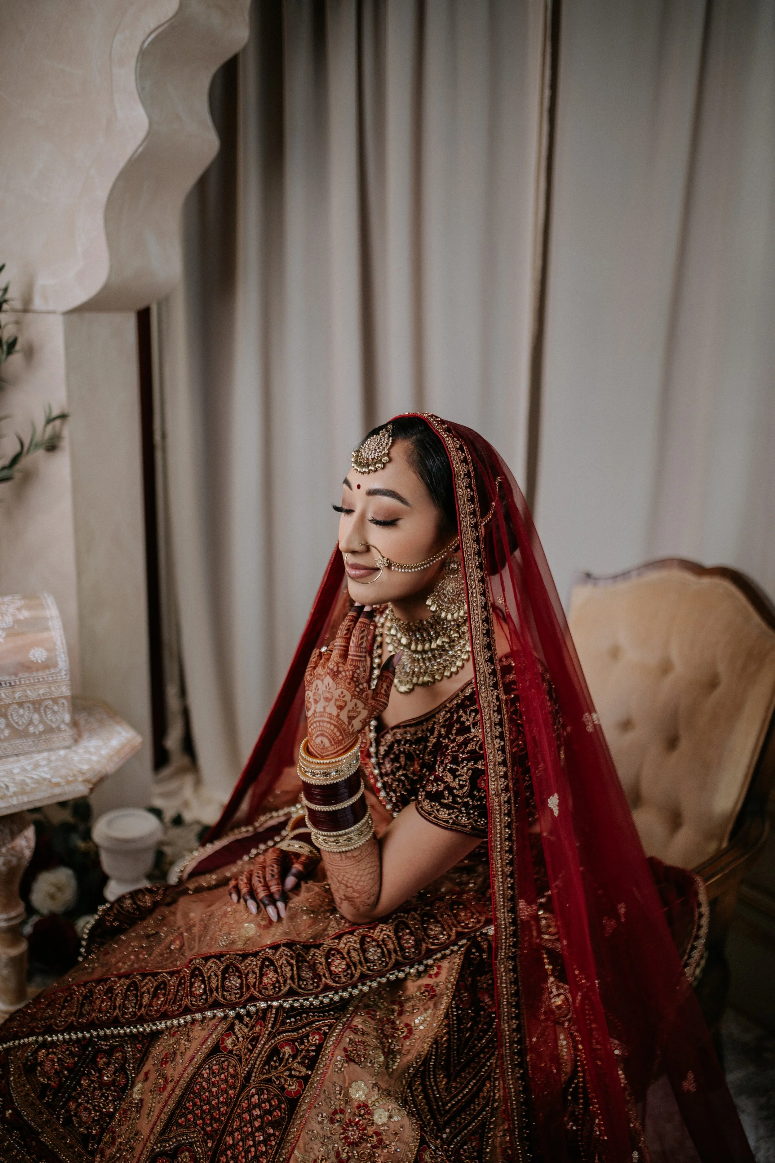 When she found the one: a stunning maroon lehenga with blush pink accents, it wasn’t just Maskeen who felt it. “The second I put on my wedding lehenga, my sister started crying and said it was the one. I knew it was too,” she recalls. The moment quickly turned into a chain reaction. “She made my mom start crying, and then the shop worker was talking about his daughter, and soon he and my dad were in tears too,” she laughs. “It was such a sweet and endearing moment.”