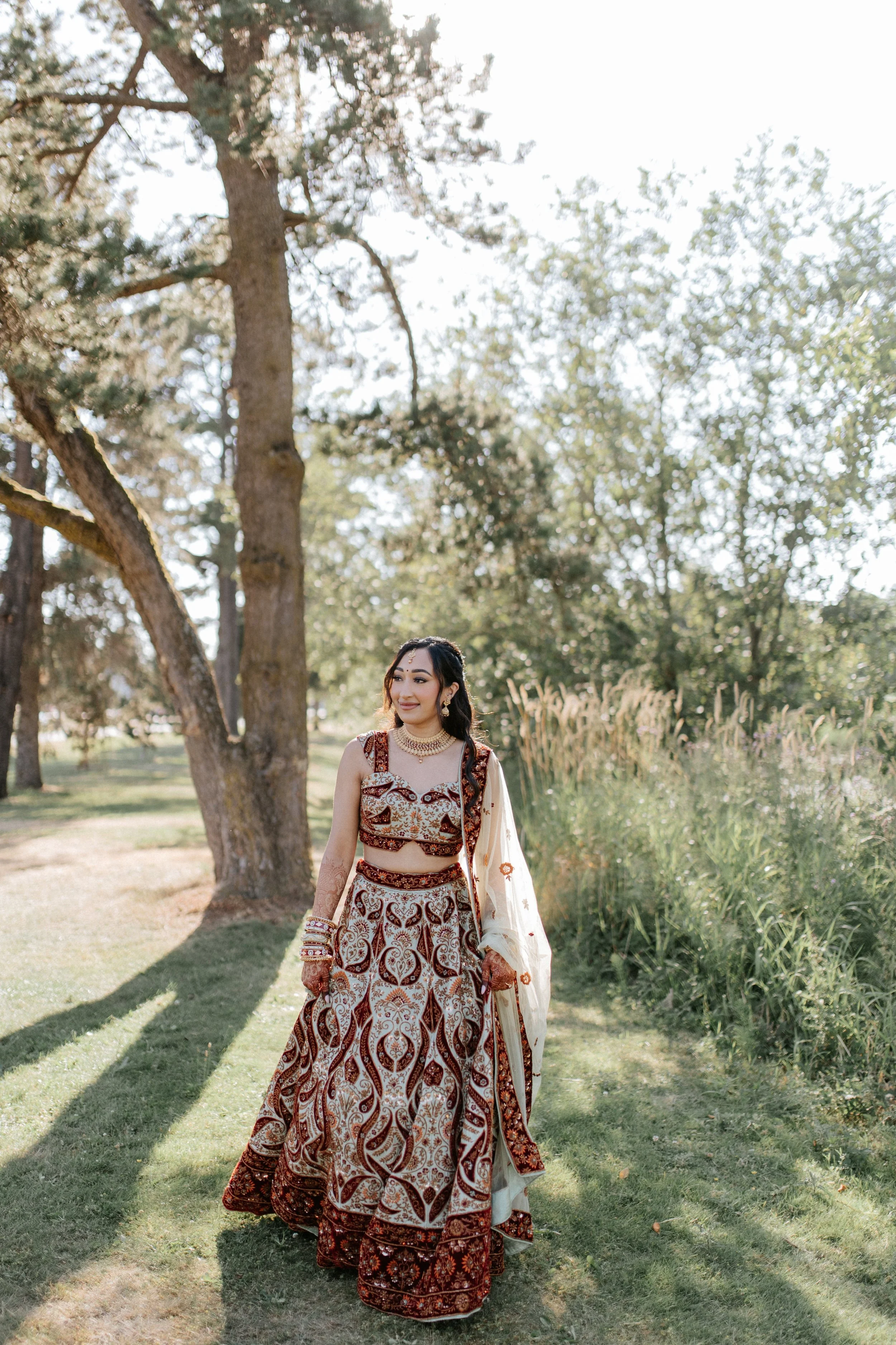 After hours of trying on outfits and a good night’s sleep, Maskeen knew her instincts had been right. “The next day, I was still stuck on both the Jago and reception lehenga. Everything else I tried on just confirmed that I wanted them. Couldn’t believe it.”